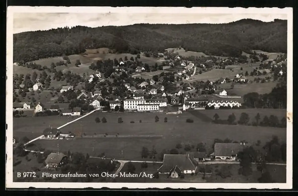 AK Ober-Muhen /Aargau, Ortsansicht, Fliegeraufnahme