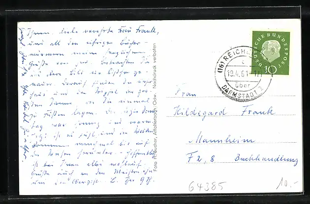 alte Ansichtskarte, gelaufen 1961, Eckknick oben re., guter Zustand