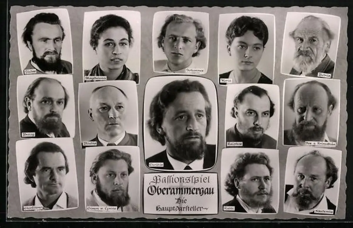 AK Oberammergau, Die Hauptdarsteller des Passionsspiels