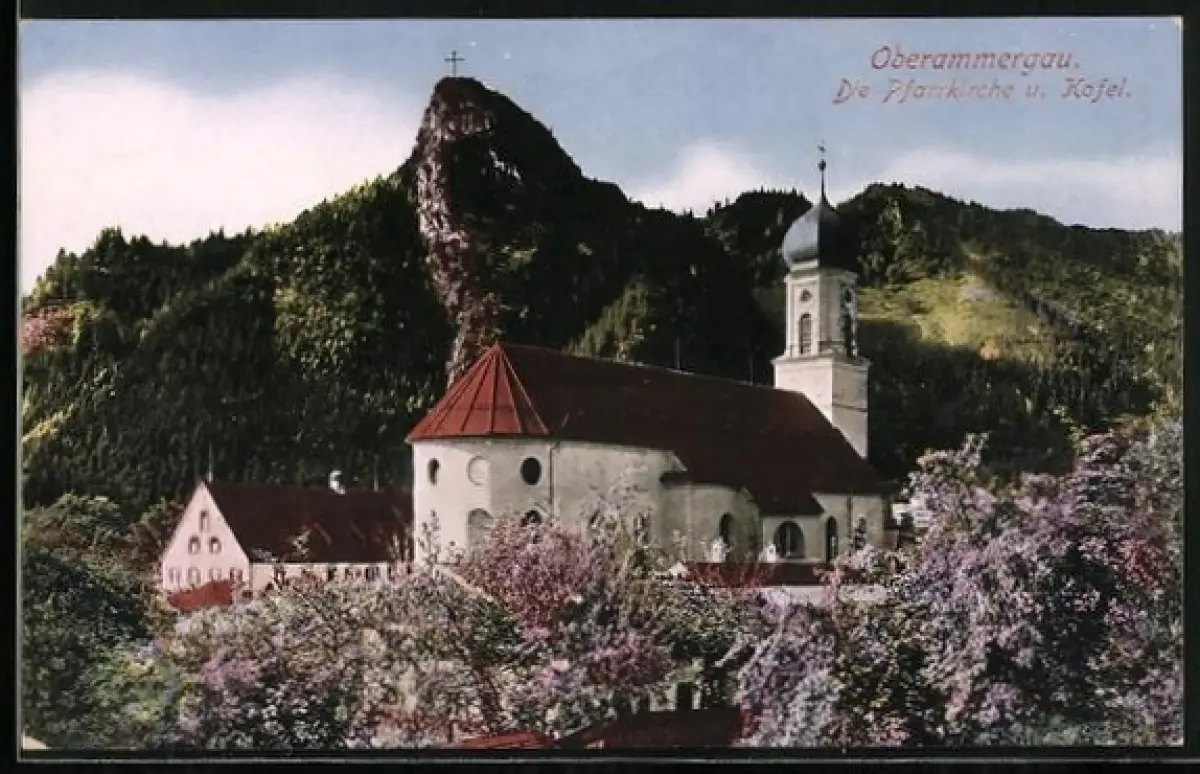 AK Oberammergau, Die Pfarrkirche und Kofel
