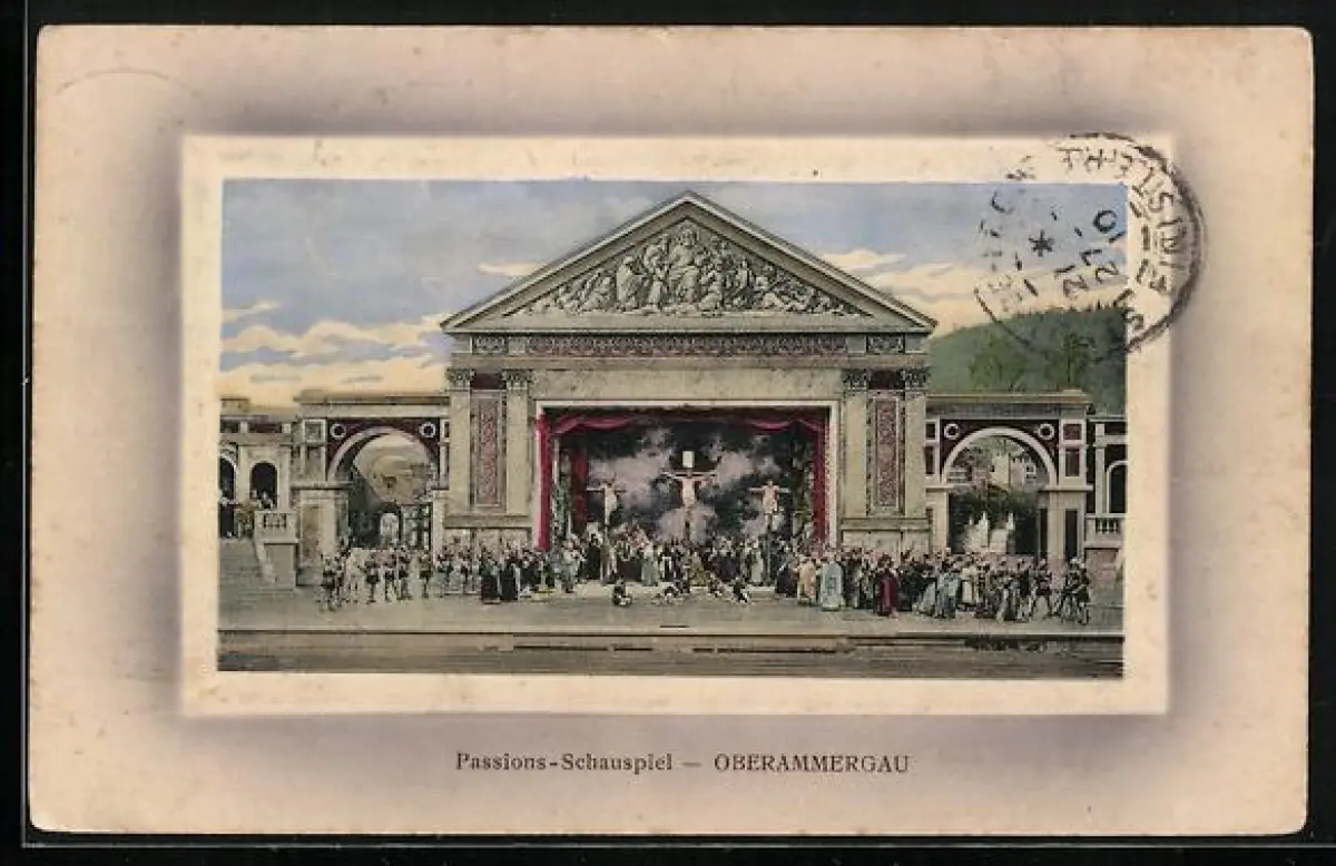 AK Oberammergau, Passionsschauspiel, Blick auf die Bühne