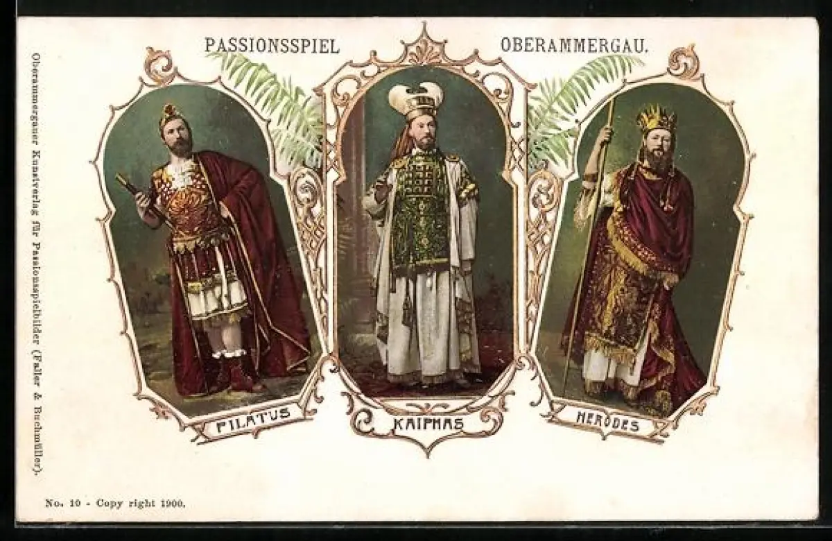 AK Oberammergau, Rollen des Pilatus, Kaiphas und des Herodes bei den Passionsspielen in der Stadt