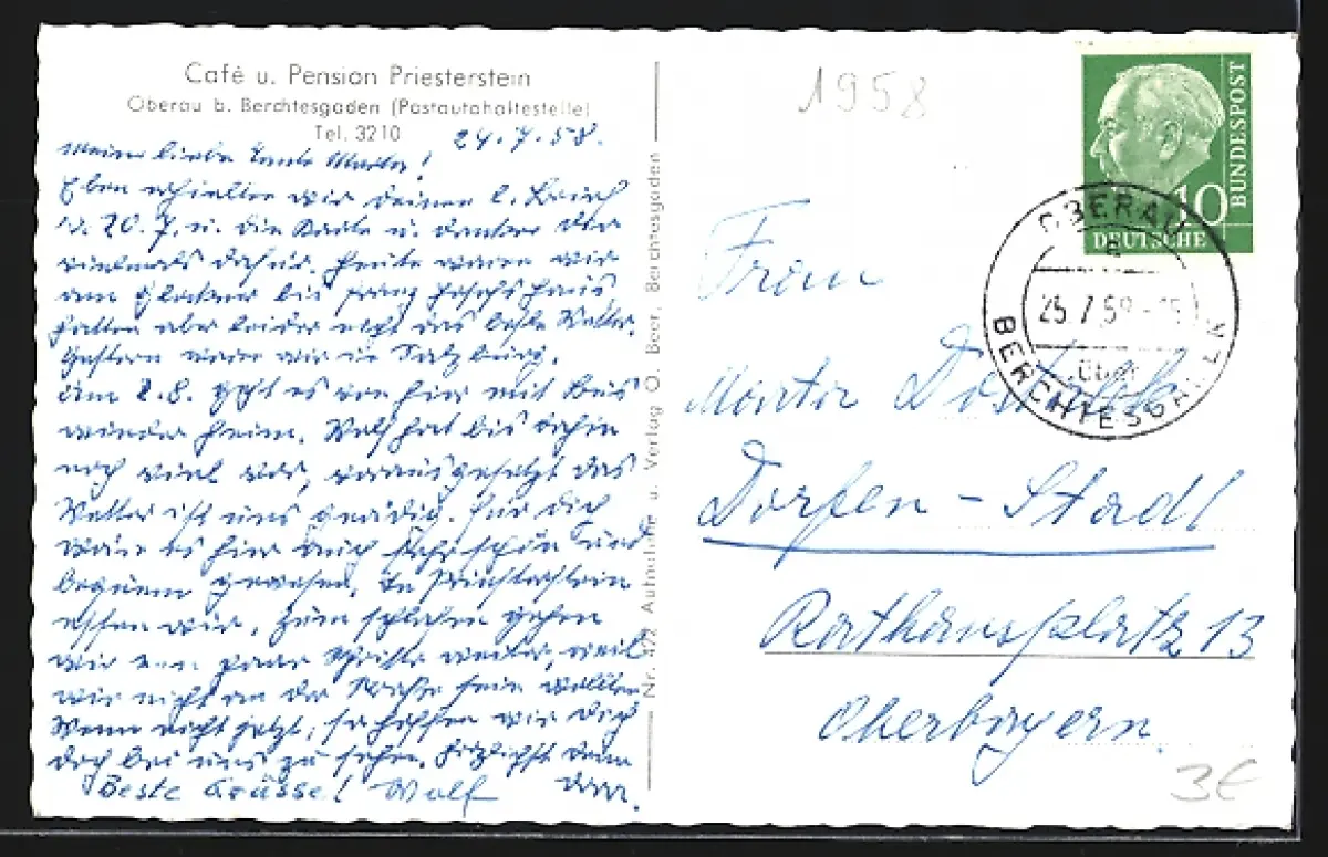 AK Oberau b. Berchtesgaden, Café und Pension Priesterstein, Watzmann, Hochkalter, Reiteralpe