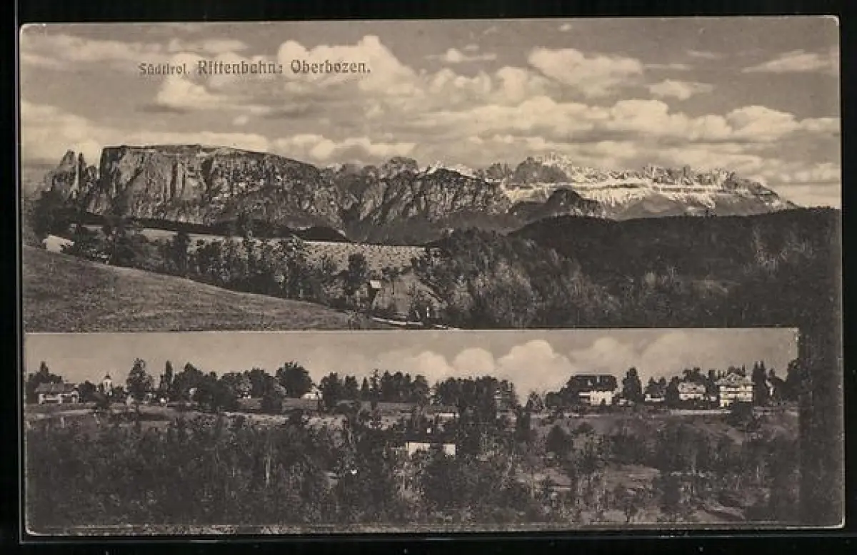 AK Oberbozen /Rittenbahn, Ortsansicht mit Bergpanorama