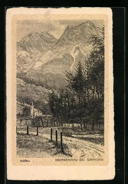AK Obergrainau, Totale mit Kirche