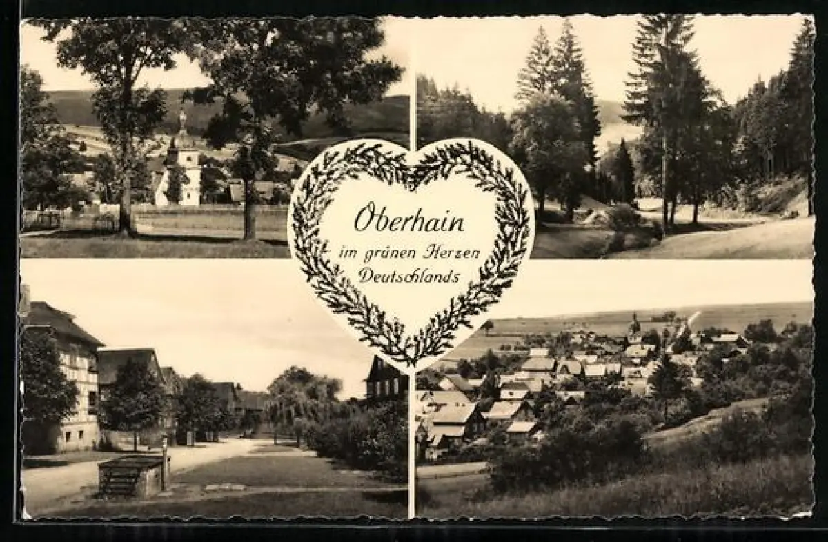 AK Oberhain, Kirche, Strassenpartie und Totalansicht