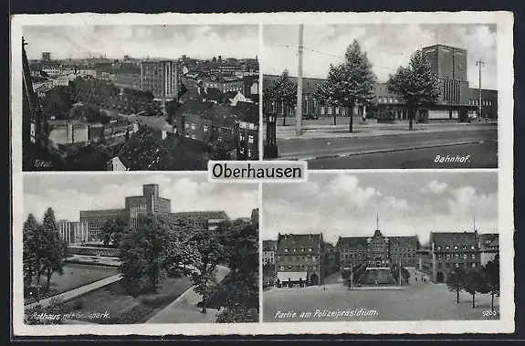 AK Oberhausen / Rhld., Totalansicht, Bahnhof, Rathaus mit Grillopark, Partie am Polizeipräsidium