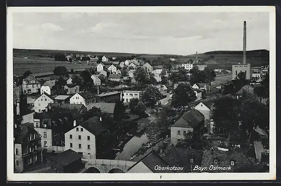 AK Oberkotzau, Ortsansicht mit Brücke und Fabriken