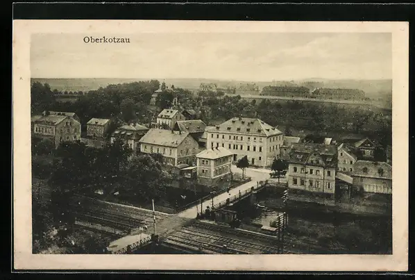 AK Oberkotzau, Teilansicht aus der Vogelschau mit Bahngleisen