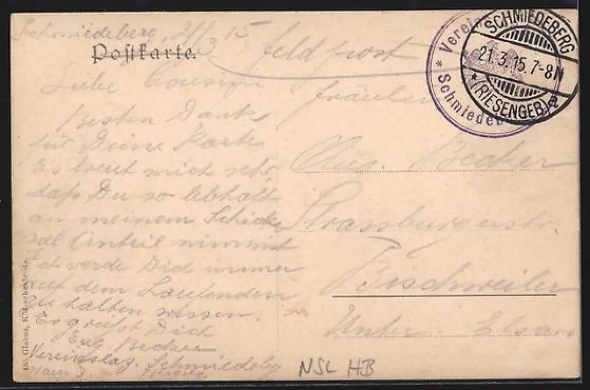 alte Ansichtskarte, gelaufen 1915, Stempelspur, guter Zustand