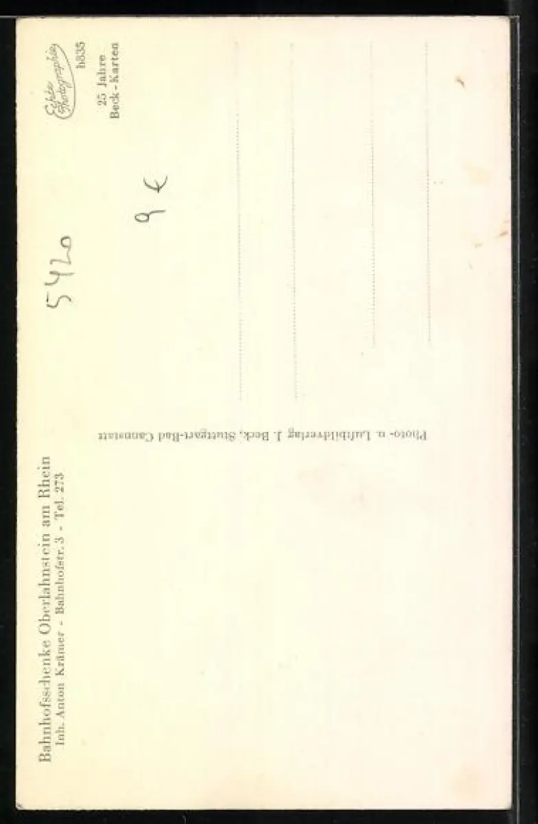 AK Oberlahnstein am Rhein, Gasthof Bahnhofsschenke, Inh. Antone Krämer, Bahnhofstrasse 3