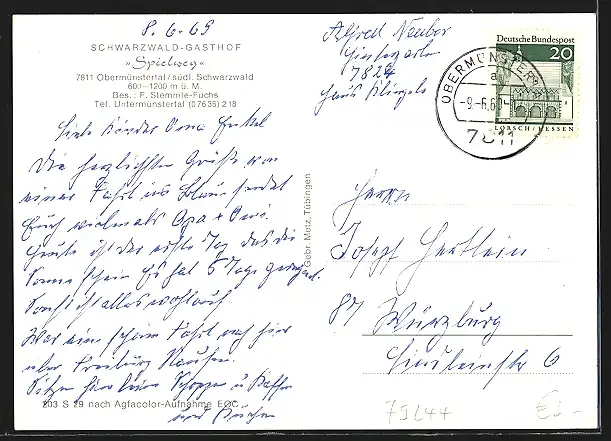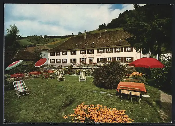 AK Obermünstertal /Schwarzwald, Gasthof Spielweg F. Stemmle-Fuchs, Gartenansicht