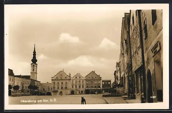 AK Obernberg am Inn, Strassenpartie mit Gasthaus Max Riedl