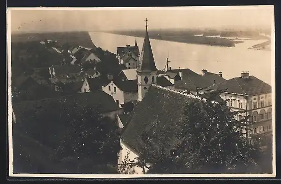 AK Obernberg am Inn, Uferpartie mit Kirche
