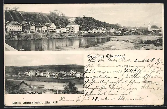 AK Oberndorf, Stadtpanorama vom anderen Ufer gesehen, Teilansicht aus der Vogelschau