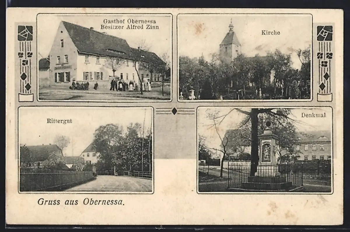 AK Obernessa, Gasthof Obernessa, Rittergut, Kirche