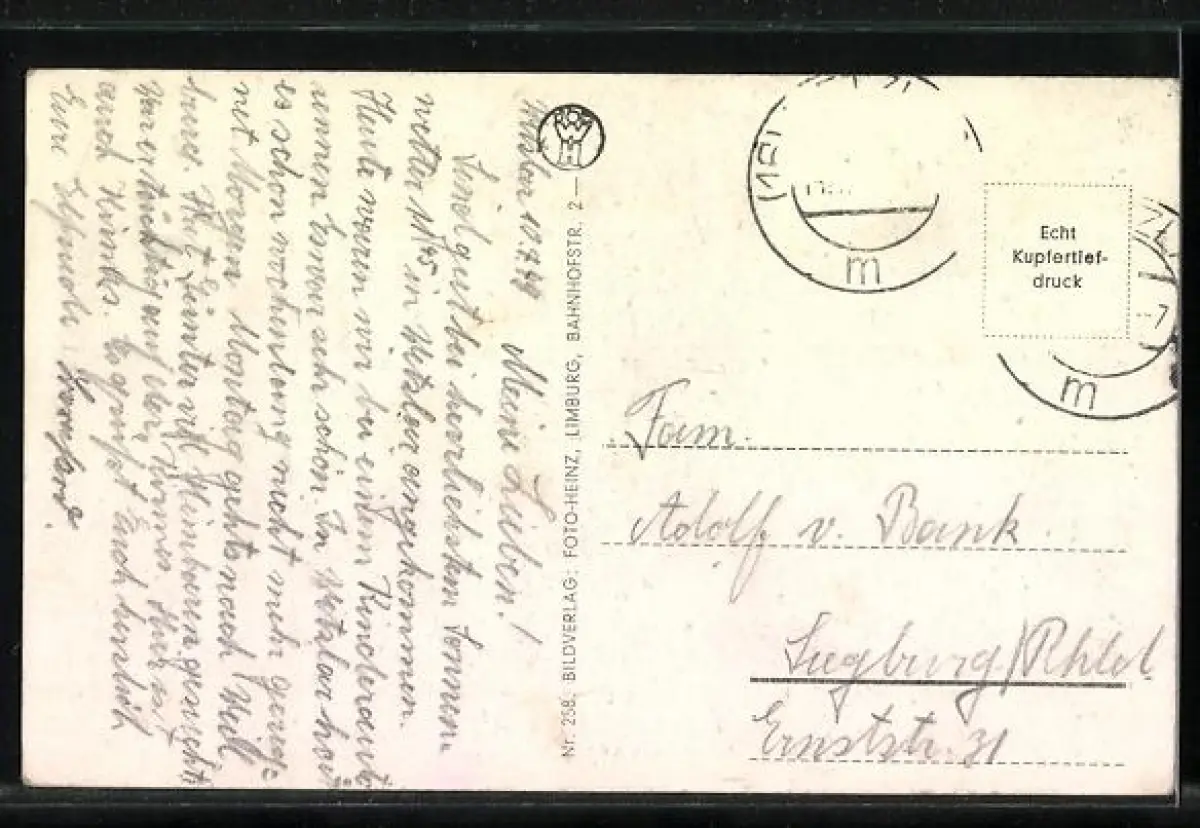 alte Ansichtskarte, gelaufen 1949, Briefmarke entfernt, Eckknick re. oben, guter Zustand