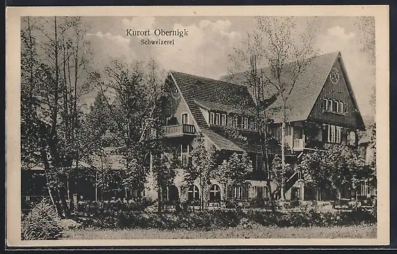 AK Obernigk, Schweizerei umgeben von Bäumen