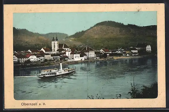 AK Obernzell a. D., Flusspartie mit Dampfer