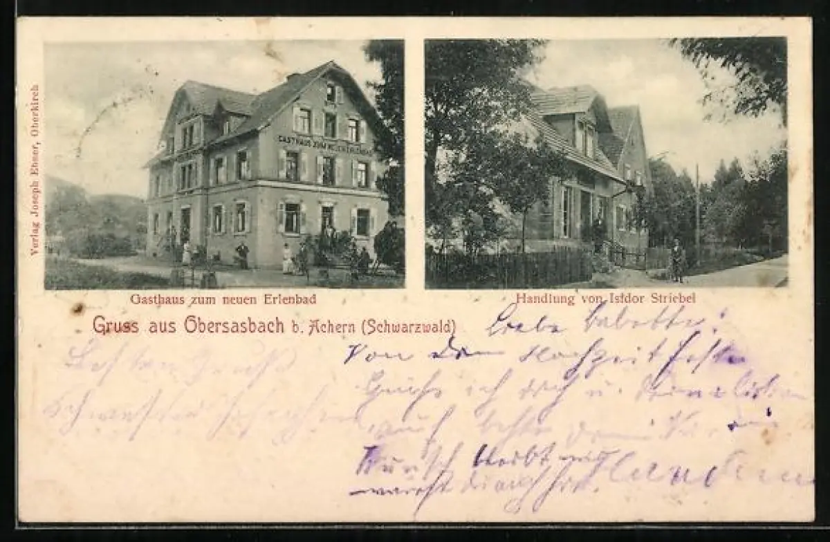 AK Obersasbach b. Acher, Gasthaus zum neuen Erlenbad, Handlung von Isidor Striebel