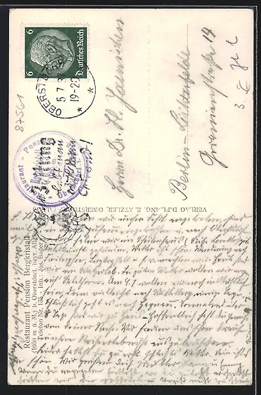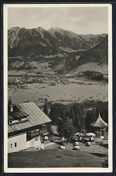 AK Oberstdorf /Bayr. Allgäu, Restaurant Pension Bergkristall, Bes. Jos. Bader, Blick ins Tal