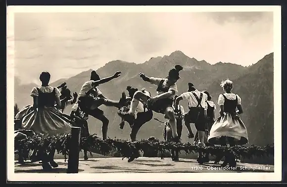 AK Oberstdorfer Schuhplattler, Bayern in Trachten tanzen