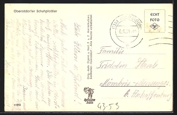 alte Ansichtskarte, gelaufen 1956, Stempelspur, Briefmarke entfernt, guter Zustand