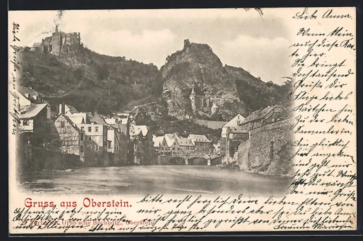 AK Oberstein, Burg, Felsenkirche, Naheufer