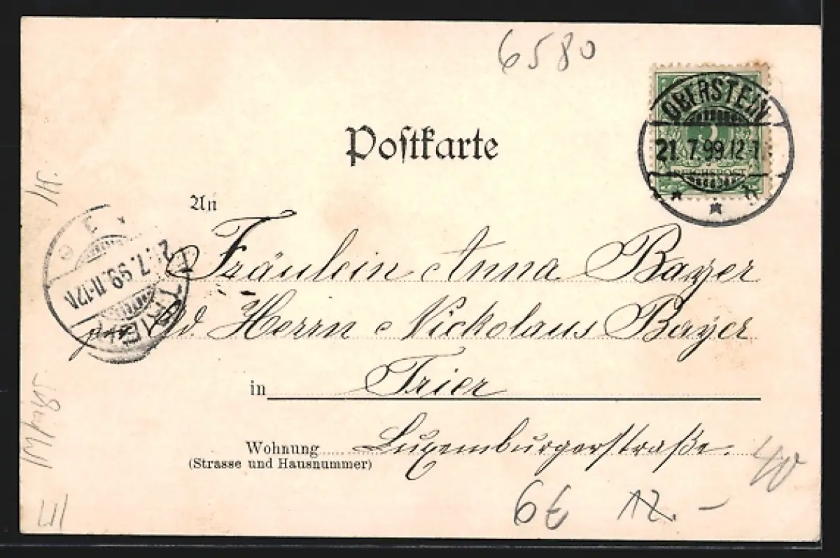 alte Ansichtskarte, gelaufen 1899, guter Zustand