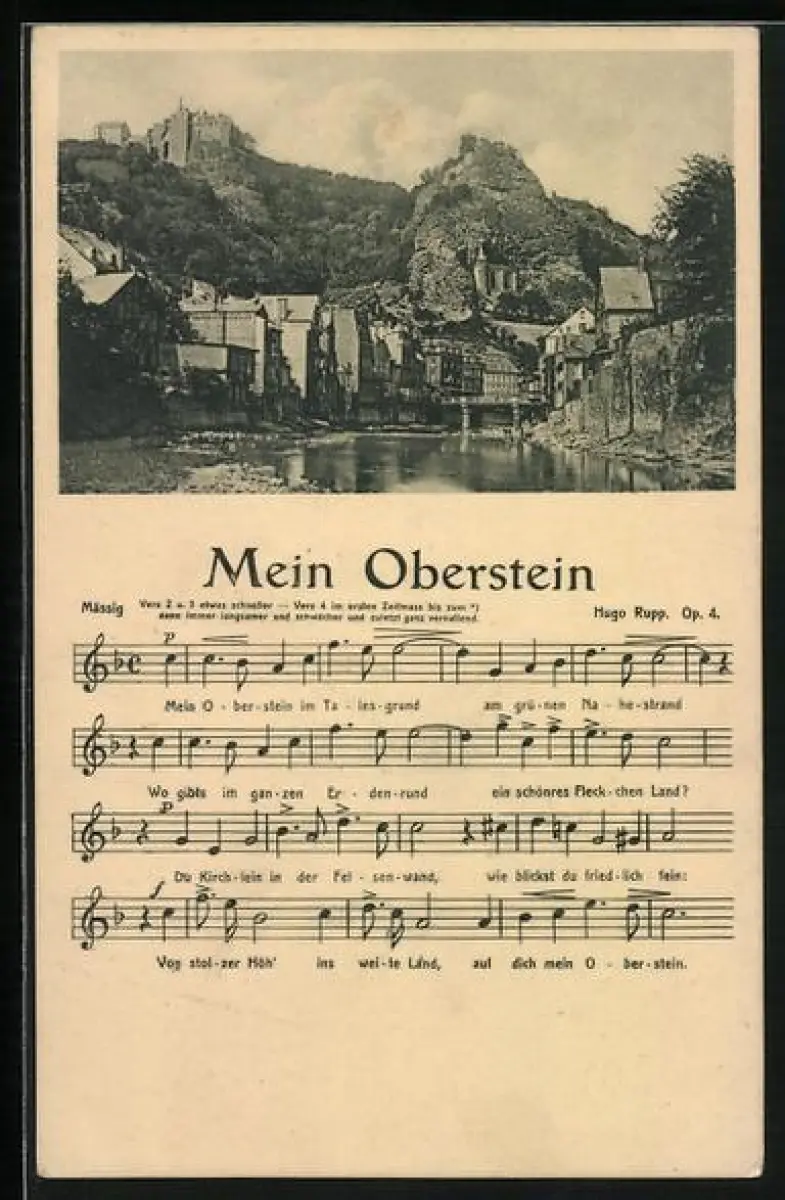 AK Oberstein a. Nahe, Ortsansicht und Nahepartie, Liedtext Mein Oberstein