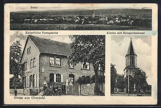 AK Obersuhl, Kaiserliche Postagentur, Kirche mit Kriegerdenkmal