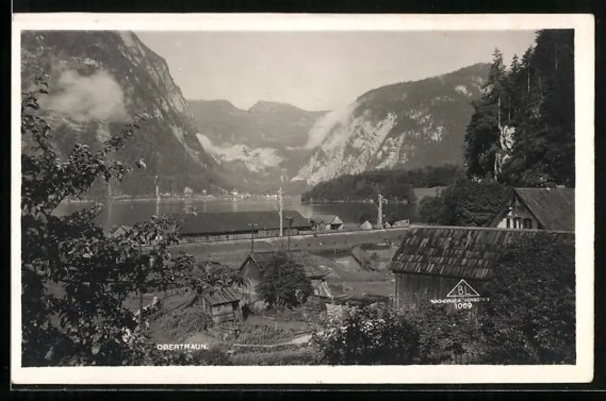 AK Obertraun, Ortspartie mit Bergen