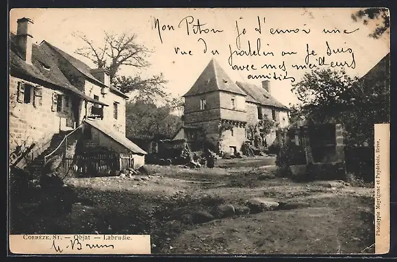 AK Objat, Vue de Labradie avec maisons traditionnelles et chemin rural