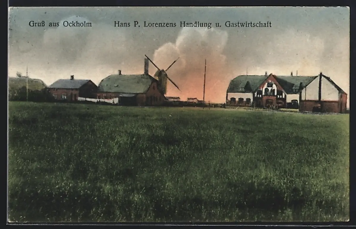 AK Ockholm, Gasthaus Hans P. Lorenzen und die Mühle