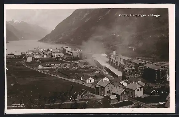 AK Odda /Hardanger, Ortsansicht aus der Vogelschau