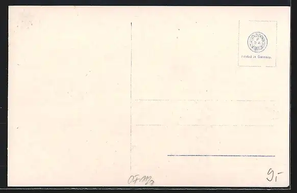 Personenbezogene Daten auf der Rückseite der Karte wurden durch blauen Textmarker unkenntlich gemacht. Die blauen Stellen sind auf die Vorderseite durchgeweicht und wirken sich negativ auf das Postkartenfoto aus