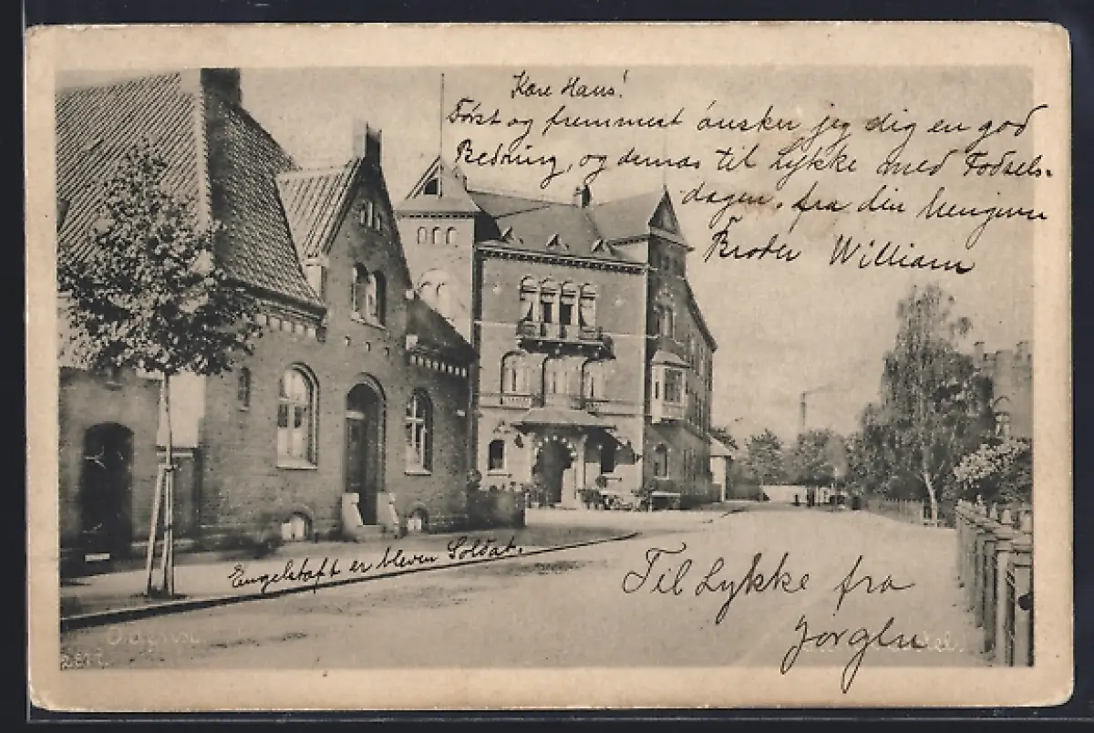 AK Odense, Strassenpartie mit zwei Gebäuden