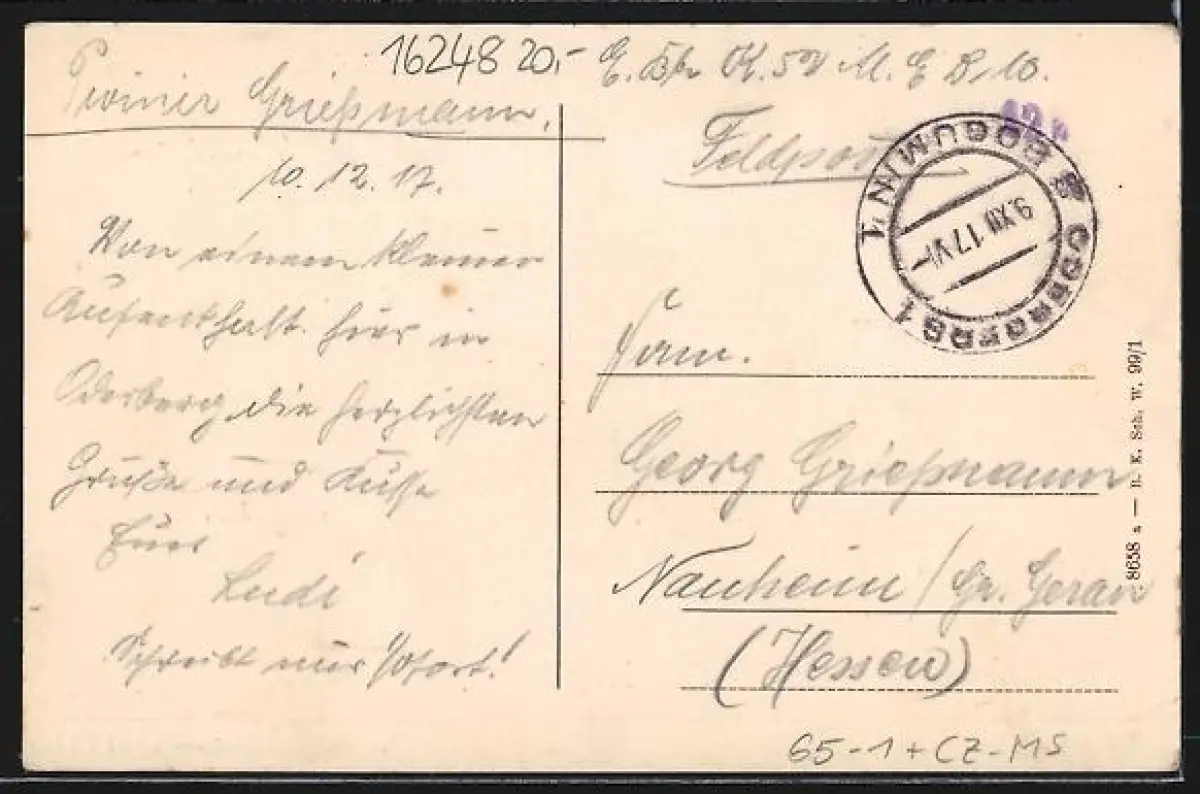 alte Ansichtskarte, gelaufen 1917, guter Zustand
