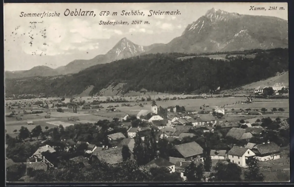 AK Oeblarn, Ortspanorama mit Stoderzinken und Kamm