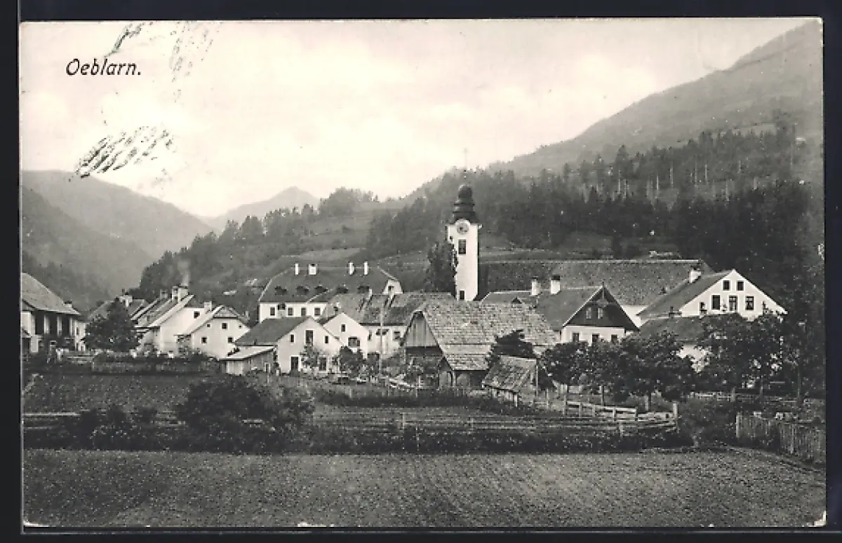 AK Oeblarn, Partie am Ortsrand mit Kirche