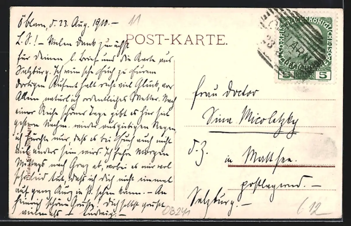 gelaufen 1910, Stempelspur, guter Zustand