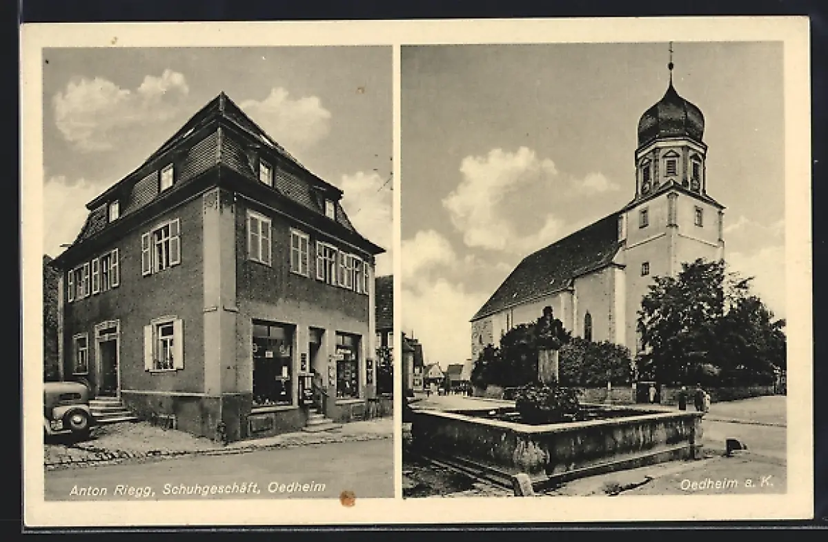 AK Oedheim a. K., Schuhgeschäft Anton Riegg, Kirche