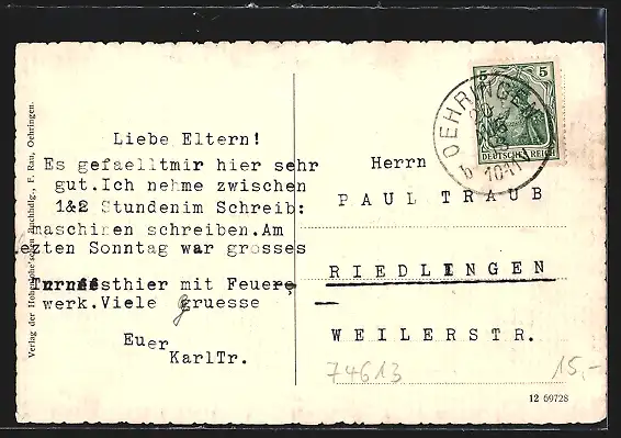 alte Ansichtskarte, gelaufen 1913, guter Zustand