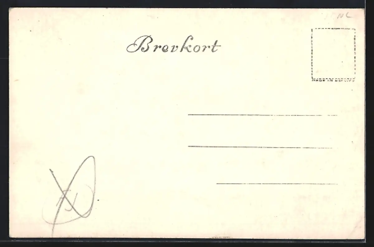 Personenbezogene Daten auf der Rückseite der Karte wurden durch blauen Textmarker unkenntlich gemacht. Die blauen Stellen sind auf die Vorderseite durchgeweicht und wirken sich negativ auf das Postkartenfoto aus