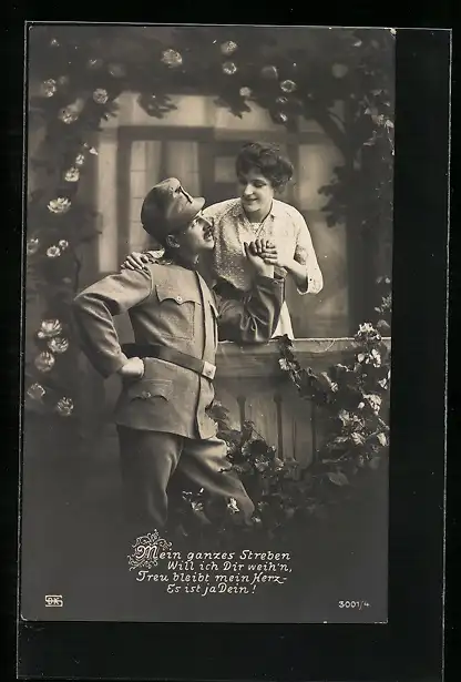 AK Österreichischer Soldat in Uniform am Fenster mit seiner Frau