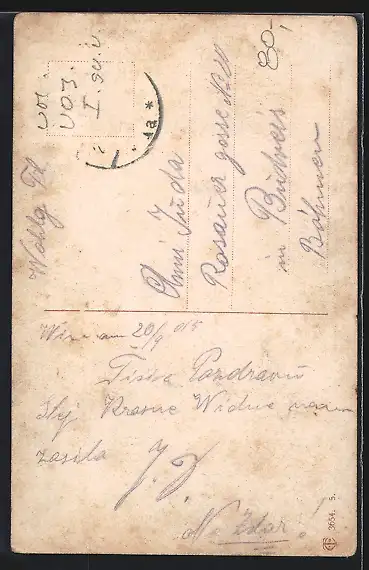 alte Ansichtskarte, gelaufen, Briefmarke entfernt, rückseitig Oberflächenschaden, guter Zustand