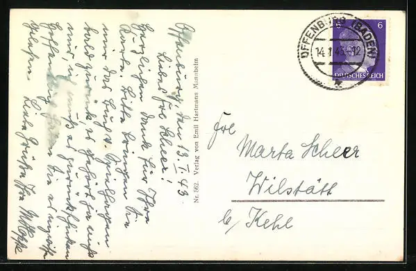 alte Ansichtskarte, gelaufen 1943, guter Zustand
