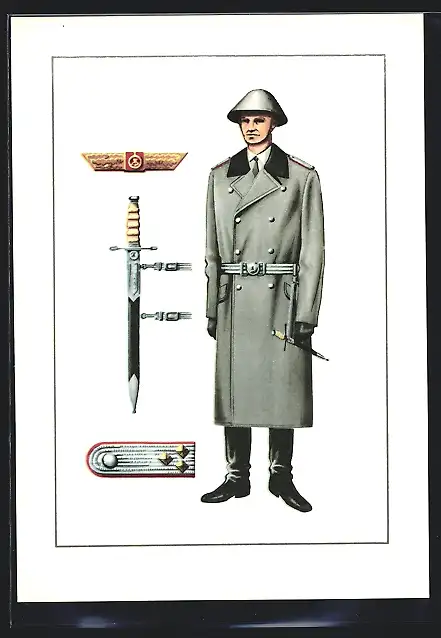 AK Offizier der Landstreitkräfte in Paradeuniform Winter der der NVA, Qualifizierungsspange, Ehrendolch