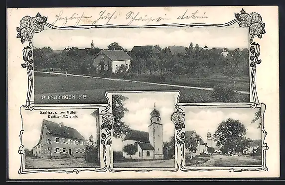 AK Offnadingen i. B., Gasthaus zum Adler, Kirche