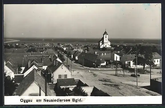 AK Oggau am Neusiedlersee, Teilansicht mit Kirche und Strassenpartie